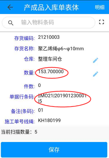 2.通過掃描《生產(chǎn)訂單》,生成產(chǎn)成品入庫單,倒庫入沖生成材料出庫單