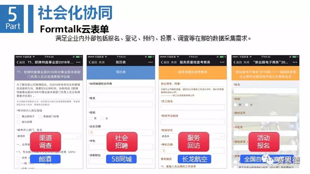 第五環(huán)是社會化協(xié)同。任何企業(yè)都要知道,客戶的第一反應是什么,知道下游供應商的隨動是什么?與其他社交軟件打通,實現(xiàn)移動辦公。